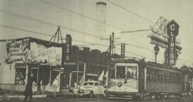 This is a terrific picture of the 3361-3379 block of North High Street. To the left (south), at 3361 N High, is the Tropicana Record Bar. Next to that at 3363 N High is the Clinton Inn Restaurant. 3365 N High was occupied by J. L Oelgoetz Plumber; 3367 N High by Clintonville Electric. Then there are 2 more addresses (hidden behind the streetcar) to the south of the Clinton Theatre; one was a real estate broker and the other a beauty shop during this era. The Tropicana Record Bar opened in 1948, as a branch of Clintonville Electric. It burned down in 1953, along with the Clinton Inn Restaurant next door. So, the photo was taken between 1948 and 1953.