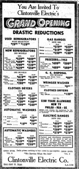 In March 1954, Hinton announced the opening of a new sales room for Clintonville Electric Appliances at 3361-3363, taking over the spaces after the fire destroyed the businesses at those addresses.
