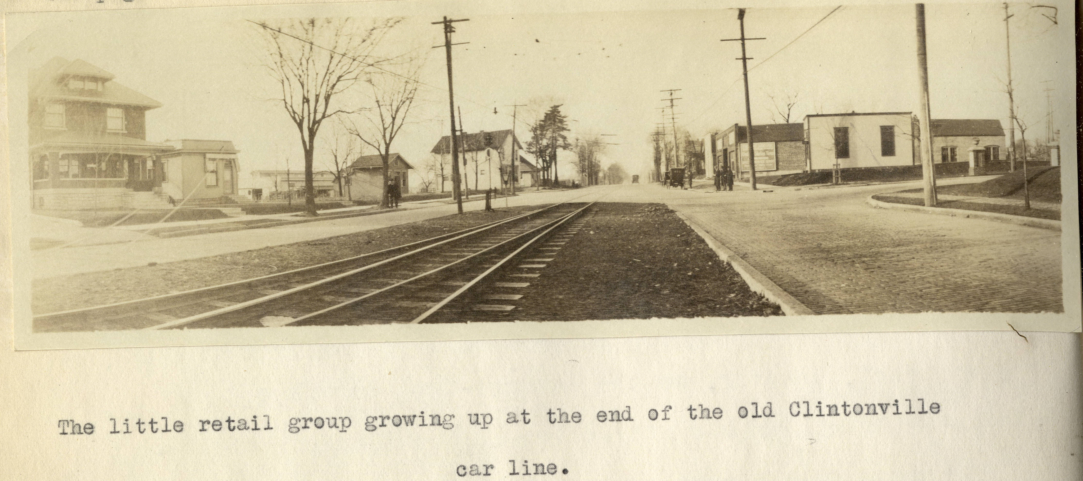 Beyond Hudson Street to Arcadia Avenue, High Street is about solidly lined with small, but unattractive store rooms, this being the business section of the old, formerly outlying, hamlet of North Columbus. Here, at the corner of Arcadia and High is located the car barn and the end of the High Street car lines. Until recently, from this corner, through Clintonville, the Clintonville line and the Columbus, Delaware and Marion Interurban cars furnished the transportation service; now, the former line has been superseded by an extension of the Summit Street line. At the center of the former suburban village of Clintonville , where Clinton Heights Avenue joins High Street a small retail center has grown up, which is extending northward on High Street , a short distance . At the end of the Clintonville car service another little business center is coming into existence, incidentally the cross street here, Oakland Park Avenue , is a through one into the country to the east . This point not only ends the city car service out North High Street , but the retail stores as well , which is instructive as to the influence of such transport service upon the location of retail stores.
